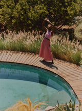 Supima Slub Scooped Hem Midi Dress in Cherry Liquor